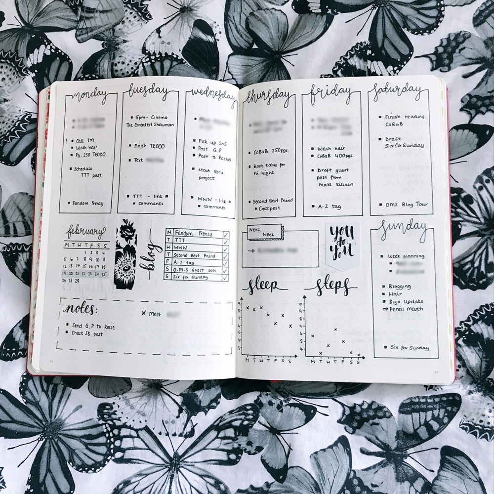 My newly evolved weekly spread is going well at the moment. I changed it up a little bit due to the nature of changing my habit tracker and wanting a different way of tracking my steps and sleep. I like this spread at the moment but in future I plan to maybe jazz it up more with some stickers and washi tape to add colour, which is the only thing I really miss on my weekly spreads.